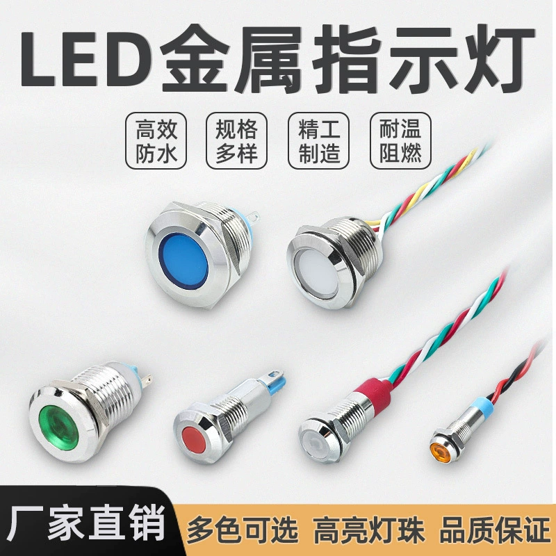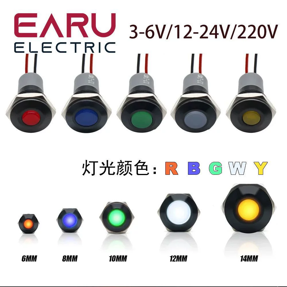 6mm8mm10mm12mm металлический индикатор с проводом питания рабочий сигнал светодиодный свет 5v6v12V24V