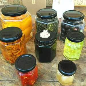 Оптовая продажа фунт меда бутылка из шестиугольного стекла бутылка герметичная бутылка для хранения маринада бутылка консервированного варенья бутылка с крышкой