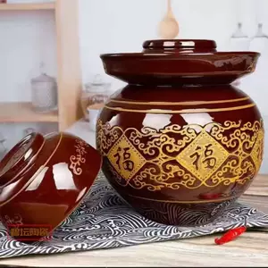 Большая глиняная банка для соления овощей, утолщенная глиняная банка для вина, керамическая банка.
