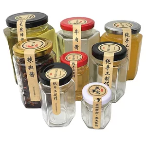 Герметичная стеклянная банка для меда, шестигранная банка для хранения, пищевая банка для джема, устойчивая к высоким температурам, банка для соуса чили, банка для соуса из говядины, с возможностью индивидуального заказа