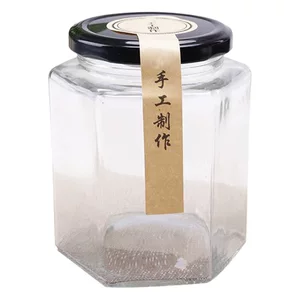 Оптовая продажа фунт меда бутылка из шестиугольного стекла бутылка герметичная бутылка для хранения маринада бутылка консервированного варенья бутылка с крышкой