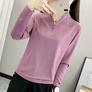 Спорт на открытом воздухе Футболка с воротником для походов Женская тонкая быстросохнущая одежда больших размеров Свободный солнцезащитный крем с длинными рукавами Быстросохнущий летний топ