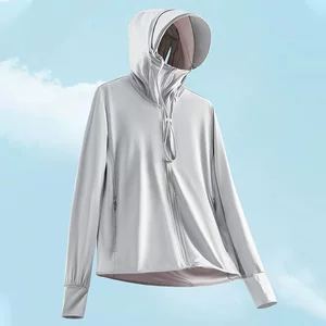 Одежда из ледяного шелка для защиты от солнца для женщин летом, со съемным капюшоном, легкая, с ощущением прохлады, с защитой от ультрафиолета, рыболовная куртка для мужчин.