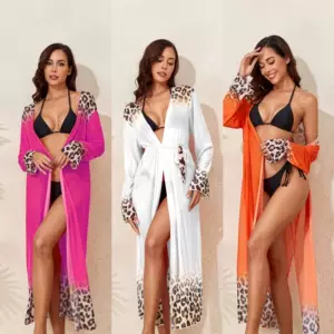 Пальто трансграничное Европейская и американская женская сексуальная прозрачная сетка на поясе неровная Пляжная бикини блузка кардиган