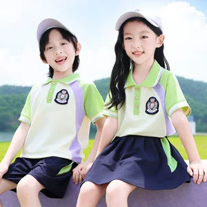 Летний костюм, школьная форма для младших классов, свободная рубашка-поло с короткими рукавами в консервативном стиле, выпускная форма для школьников начальной школы, комплект из трех предметов