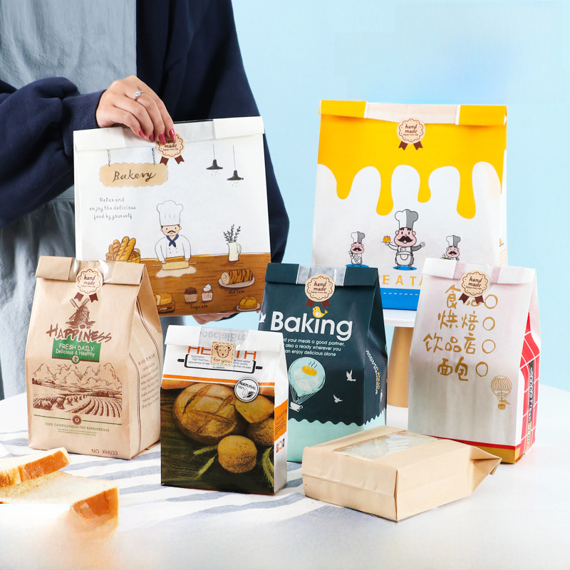 Пакеты для хлеба с окном, пищевые перфорированные пакеты из крафт-бумаги для тостов, для выпечки тортов, трансграничная кастомизация для Amazon