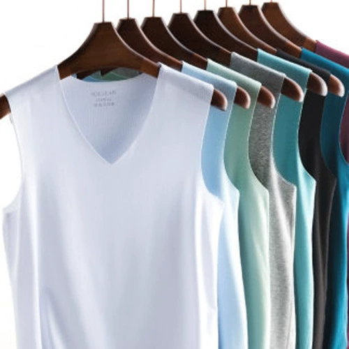 Жилет из ледяного шелка больших размеров на выбор, Мужская бесшовная Спортивная Базовая рубашка, футболка без рукавов с V-образным вырезом, летняя тонкая мужская одежда