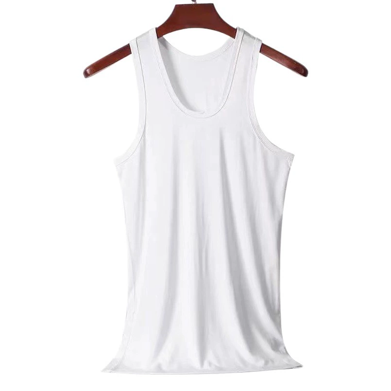 Ледяной шелк Модаль с круглым вырезом Мужской жилет Летний ледяной шелк дышащий фитнес-облегающий без рукавов спортивный тренд