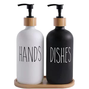 Amazon Glass 500 мл Бостон насос дезинфицирующего средства для рук черные и белые бутылки деревянная крышка дозатор мыла бутылка шампуня