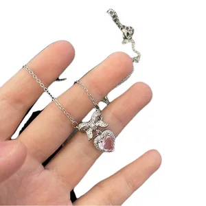 Популярное онлайн-ожерелье с розовым бантом знаменитостей в студенческом стиле, милая крутая цепочка на ключицу для девочек, универсальная легкая роскошь, лето с высоким смыслом