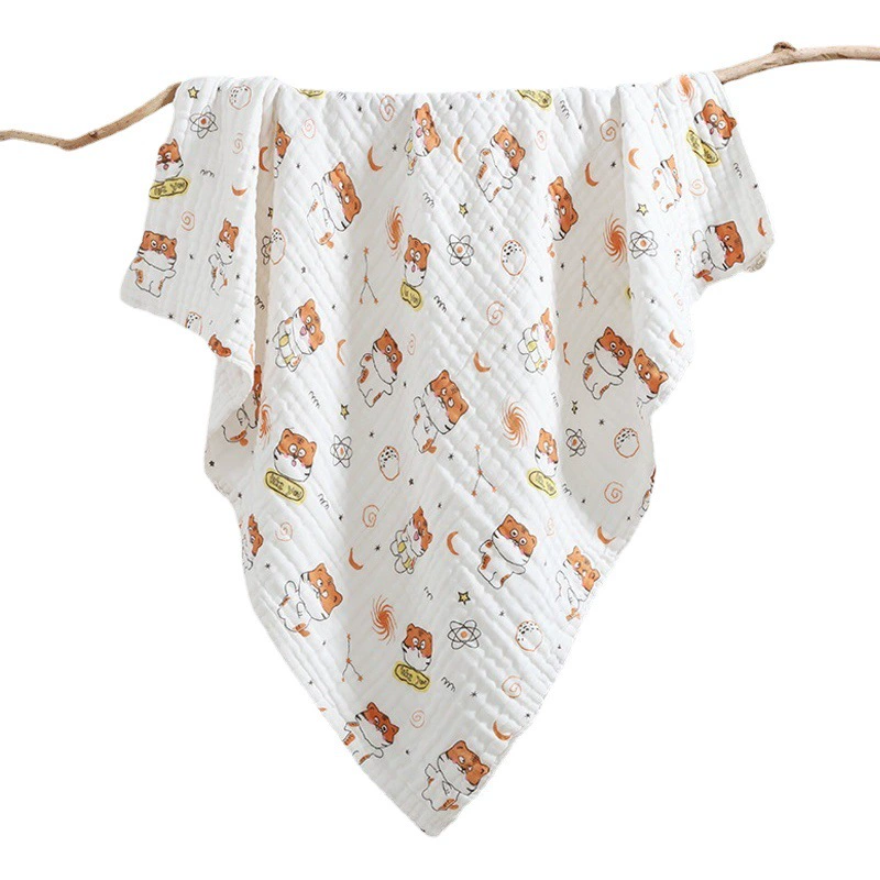 Двухслойное хлопковое марлевое одеяло-пеленка для малыша, банное полотенце с принтом, солнцезащитный козырек, одеяло для коляски