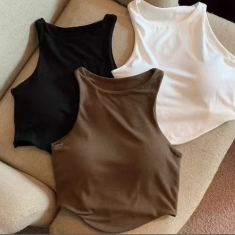 Модальный топ-камизоль с подкладками для женщин, летняя верхняя одежда, укороченный топ для йоги, топ без рукавов с открытой спиной, внутренний слой со встроенным бюстгальтером.
