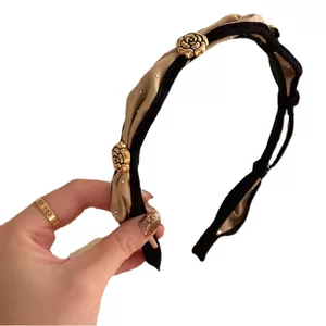 Новая кружевная повязка на голову в китайском стиле с вышивкой роз, этнический нишевый дизайн, повязка на голову с широкими полями, универсальный головной убор с высокой короной