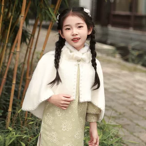 Трансграничная Новая Детская меховая шаль, пальто для девочек, детское платье с цветочным принтом, плащ для девочек с длинными рукавами, осень и зима