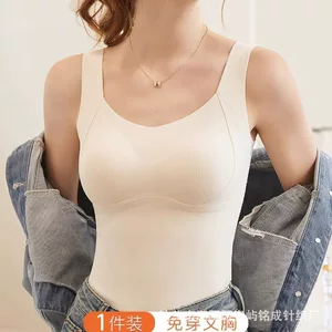 Новый осенне-зимний бесшовный терможилет для женщин со встроенными чашечками, универсальный базовый слой для ношения поверх одежды.