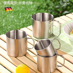 Нержавеющая сталь 304 чашка Складная Ручка чашка портативный Туризм Кемпинг чашка трансграничная поставка оптовая продажа с завода