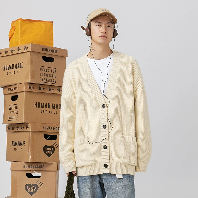Трикотаж мужской в Корейском стиле, свободный V-образный вырез, красивый высококачественный однобортный однотонный осенний кардиган, свитер, пальто для мужчин