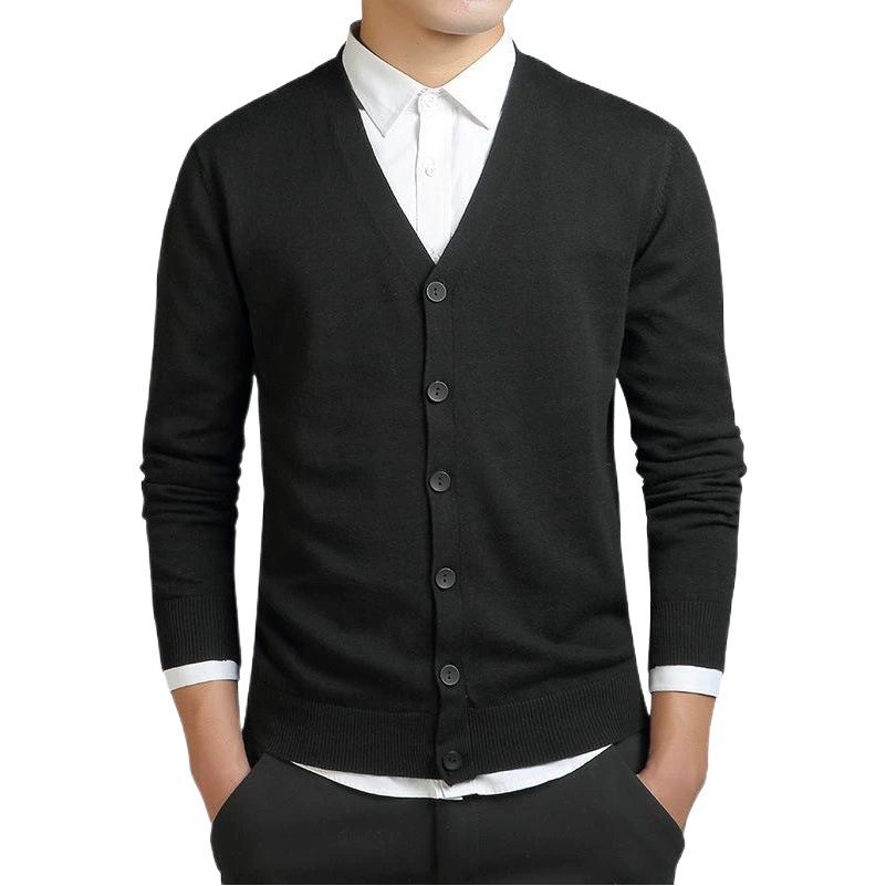 Мужской весенне-осенний Новый однотонный вязаный кардиган, мужской свитер на пуговицах с V-образным вырезом, Мужское пальто, трансграничный деловой мужской свитер