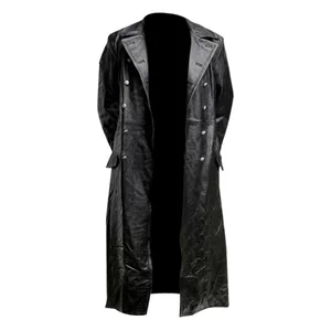 Q015 Мужской Бог моды властные игроки темперамент чистый цвет Тренч тонкая кожаная Длинная кожаная куртка мужская куртка