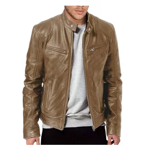 Молодежная мужская кожаная куртка с воротником-стойкой, весна и осень, новая куртка из искусственной кожи, модная повседневная кожаная куртка, велосипедная одежда