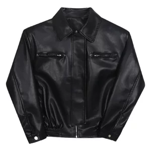 2024 новая мужская кожаная куртка с отворотом мотоциклетная куртка кожаная мужская корейская версия свободная одноразовая молодежная мужская одежда