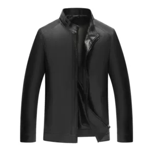 Кожаная куртка с меховым воротником, мужская зимняя верхняя одежда для среднего и пожилого возраста, мотоциклетная куртка из искусственной кожи на флисовой подкладке, теплая одежда для папы среднего возраста