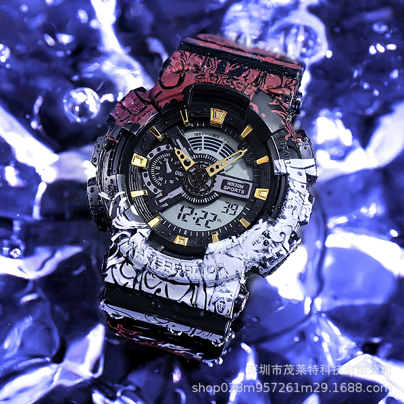 Креативные вдохновляющие граффити Спортивные модные повседневные часы Цельный двойной механизм Цифровые наручные электронные часы в стиле кибер-знаменитостей