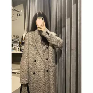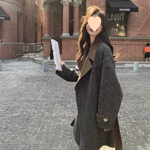 2025 новая осенне-зимняя шерстяная верхняя одежда для женщин, средней длины, толстая ММ, тонкая, свободная, в западном стиле, выше колена, женская шерстяная верхняя одежда большого размера