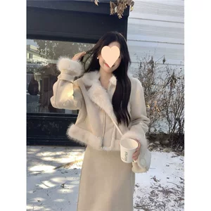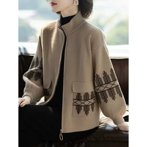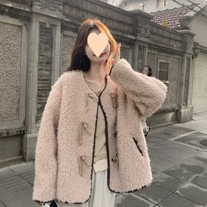 Новая женская укороченная куртка-кардиган из овечьей шерсти с плюшевой отделкой для женщин, осенне-зимняя коллекция 2026, европейский и американский стиль, для трансграничной торговли на Amazon