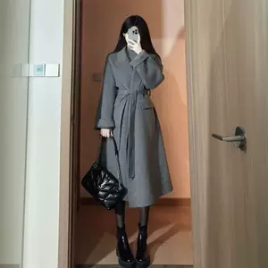 [Фабрика спот] Серый ремешок для талии шерстяная куртка женский осенний и зимний длинный рукав свободное пальто