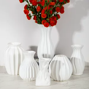 Источник простой цветочной бутылки утолщения пластиковой вазы высокого уровня белый имитация керамической декоративной бутылки может хранить воду