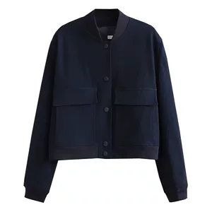 Экспортный женский новый стиль в европейском и американском стиле, мода 2025, универсальная мягкая куртка-бомбер с круглым вырезом и длинными рукавами, короткая верхняя одежда