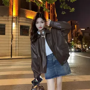 Кожаная куртка в мотоциклетном стиле 2024, европейская и американская осенне-зимняя новая свободная верхняя одежда, модная трансграничная кожаная куртка, новая женская верхняя одежда