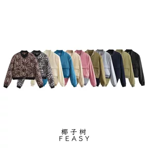 Экспортный женский новый стиль в европейском и американском стиле, мода 2025, универсальная мягкая куртка-бомбер с круглым вырезом и длинными рукавами, короткая верхняя одежда
