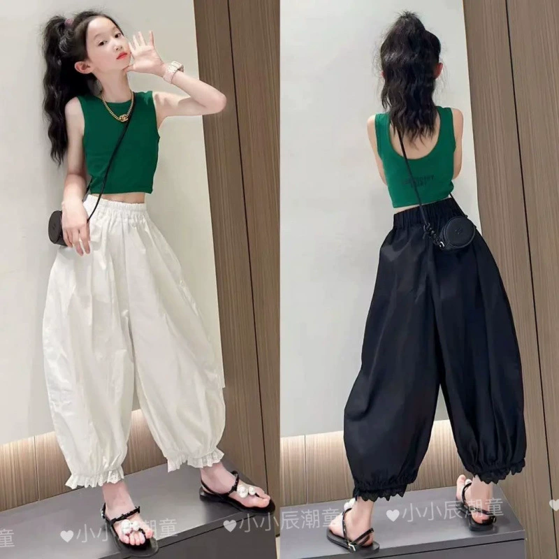 Летний костюм для девочек 2025, новый летний детский стиль, принцесса, без рукавов, модные широкие брюки, комплект из двух предметов