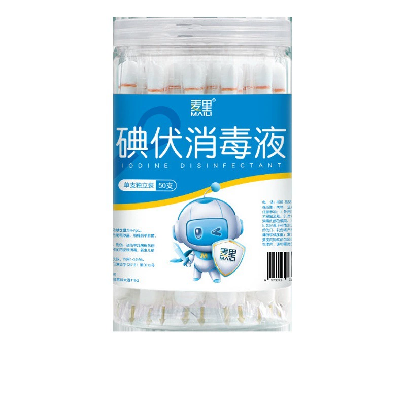Бытовые ватные палочки с йодофором, в штучной упаковке 50, одноразовые дезинфицирующие средства для ухода за детским пупком, гинекологические спиртовые тампоны