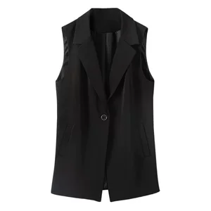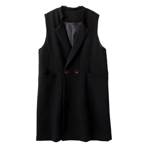 Весенний новый дизайн чувствует средний длинный костюм жилет черный ретро коммутирус