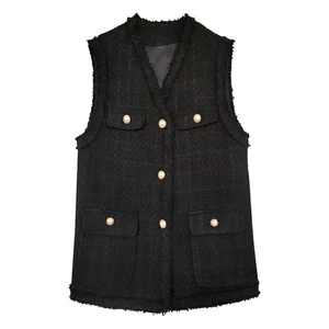 Женский жилет большого размера с твидовой шею и круглым вырезом темперамент 2024 осенний жилет тонкая толстая MM жакет для лошадей нишевые кардиган 2433