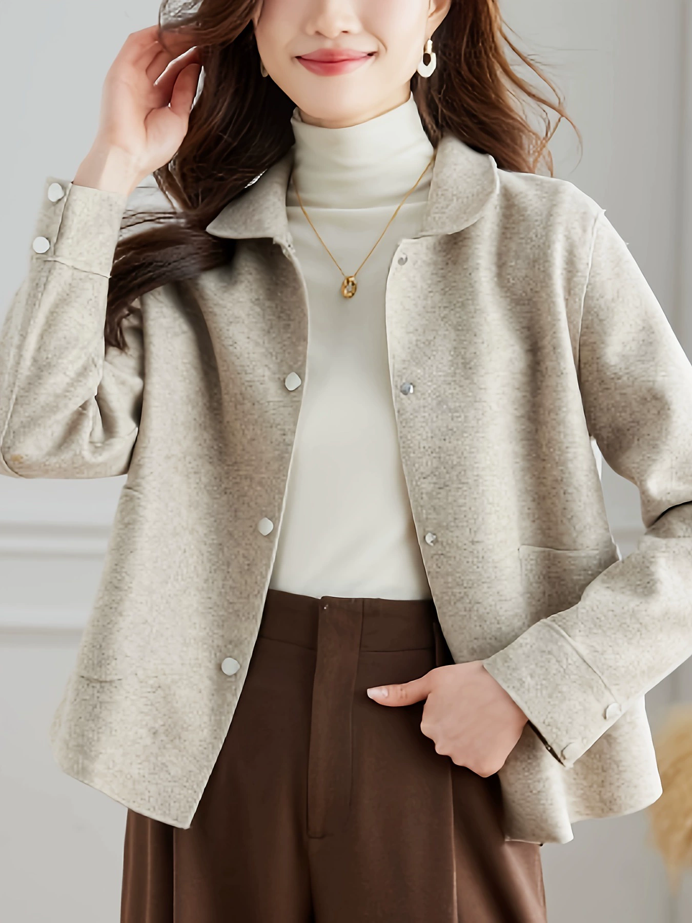 Хлопчатобумажный воротник кардиган для женщин повседневная куртка новый весенне-осенний внешний вид