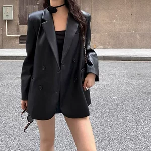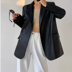 Кожаный пиджак больших размеров, женский корейский стиль, новый повседневный топ в стиле ретро, элегантная универсальная кожаная куртка для женщин