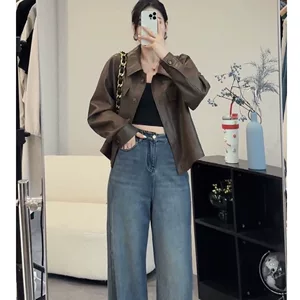 2024 Весна Новая женская одежда больших размеров пухлая Девушка Повседневная универсальная куртка из искусственной кожи с выстиранными лацканами в Корейском стиле 2401