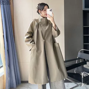 2023 Весна и осень Новый Плюс Размер Женская Шуба 200 кг пухлые девушки тонкий длинный плащ [Real 1923]
