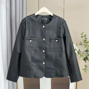 Новая короткая куртка из искусственной кожи с воротником-стойкой и пуговицами в скандинавском стиле, коллекция Весна-Осень 2026.