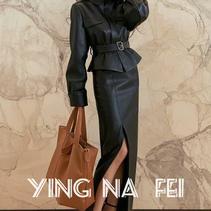 J8806 Трансграничная женская одежда больших размеров из искусственной кожи с воротником-стойкой, длинный костюм, источник, прямая продажа с фабрики