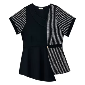 Агент по закупкам за рубежом одежды больших размеров: Женская одежда больших размеров Fat 200/ 150kg (размеры до 200/160 см), летние жаккардовые топы с коротким рукавом в корейском стиле для полных женщин.