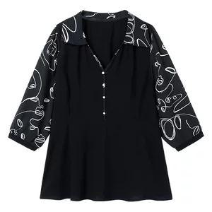Большой размер женской одежды жирный мм пузырьковый рукав шифоновая рубашка весной и осенью рубашка 280 кг свободная тонкая топ 24507T