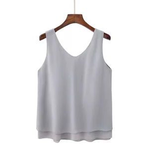 2023 женская шифоновая рубашка больших размеров в Корейском стиле, однотонный жилет с V-образным вырезом, средней длины, свободный живот, покрывающий поддельный шифоновый жилет из двух частей