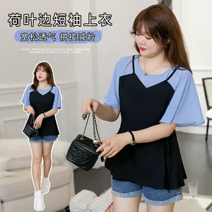 3769 мм толстый, уменьшающий возраст, большой с круглым вырезом с короткими рукавами, летняя маленькая свежая рубашка, большой размер, женская специальная корейская версия 300 кг
