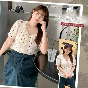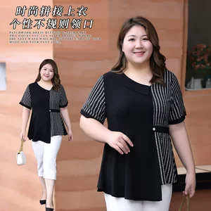 Агент по закупкам за рубежом одежды больших размеров: Женская одежда больших размеров Fat 200/ 150kg (размеры до 200/160 см), летние жаккардовые топы с коротким рукавом в корейском стиле для полных женщин.