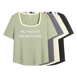 Летний модный топ в чистом стиле с квадратным воротником для женщин, женская одежда больших размеров, короткая футболка для похудения с контрастным цветным принтом, маленькая рубашка 62522